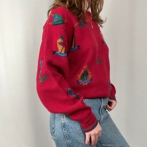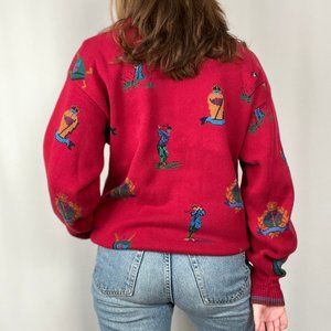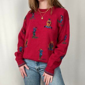 Vintage Luxury Designer Novelty Print Golfer Knit Oversized Crew Sweater Preppy