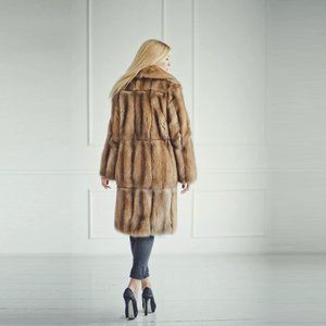 Vintage handmade real fur coat made in Toronto by House of Appel. The style is similar to the stock picture. The coat is made of fur panels same as the stock picture except this coat has cuffs on the sleeves while the stock photo doesn't have.. The under fur is light brown (beige) color and the over fur (longer hairs) are dark brown There are two slit side pockets and one hidden interior pocket. it feels very soft and comfortable. The coat is fully lined with high quality satin.