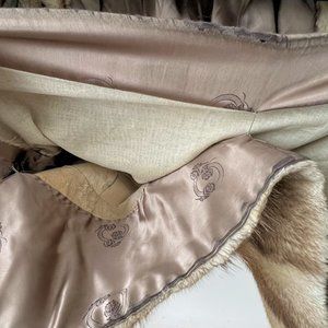 The fur exterior is in very good condition. One of the seams In the centre of the back, between panels is loose for about 2 1/2" however, it is not visible when worn and it can easily be repaired if someone wishes. See picture of the back of the coat.