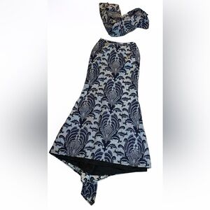 💙🩶Omg Stunning! Elegant chic! Anais style design Ethnic blue vintage flower cotton patterned jacquard They don’t make these quality anymore gorgeous fishtail fully lined maxi skirt with matching fabric for head wrap or tube blouse. Prestine condition approx detailed measurements photographed. Same day shipping from smoke free home