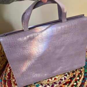 Vintage M London Lavender Crocodile-Embossed Leather Laptop Bag
