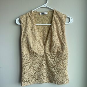 Vintage M Studio Lace Sleeveless Gold Top Medium