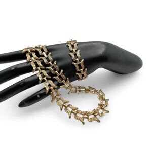 Vintage MARINO Floral Butterfly Link Necklace and Bracelet Set Gold Tone Floral