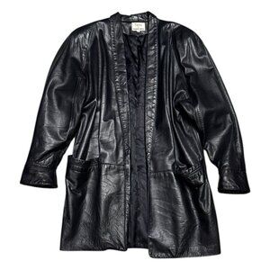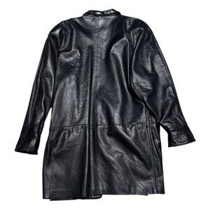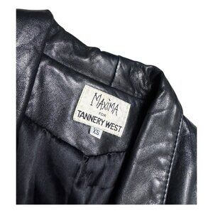Elevate your wardrobe with the timeless elegance of the MAXIMA Tannery West Genuine Leather Trench Coat. A true vintage piece, this black leather coat in women's size XS offers a classic long trench style that seamlessly transitions from casual to formal occasions. Designed to cater to a variety of settings, from business meetings to cocktail parties, it is as versatile as it is sophisticated.