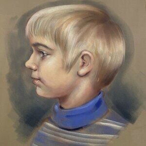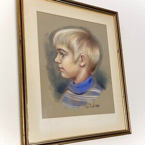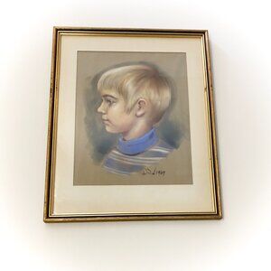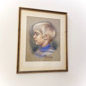 Vintage MCM 1969 Original Pastel Portrait of a Little Boy