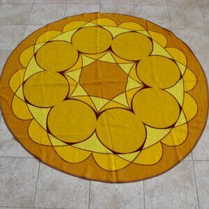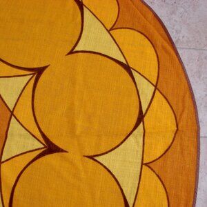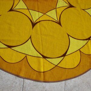 Vintage MCM 70s Round Tablecloth Orange Yellow Brown Geometric Pattern Germany