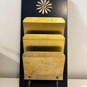 MCM Metal Mail Sorter Black and Gold “letters, bills, misc.” with Hooks For Keys