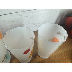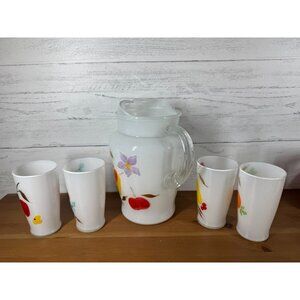 Vintage MCM Bartlett Collins Gay Fad White Frosted Fruit Pitcher & 4 Glasses