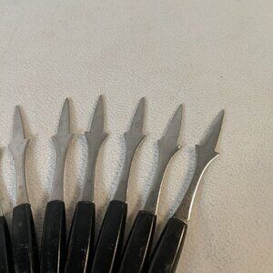Vintage MCM Cocktail Appetizer Forks 11 Set Stainless Steel Japan Black Plastic