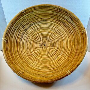 Vintage MCM Gabrielle Crespi Style Pencil Reed Rattan Bamboo Bowl Round 14" diam