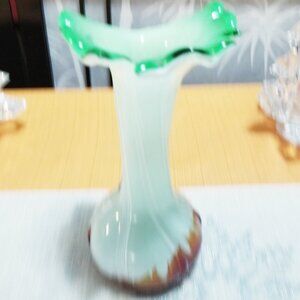 Vintage MCM Jack In The Pulpit Murano Style Green & Cranberry Bud Vase- Like new