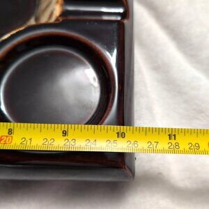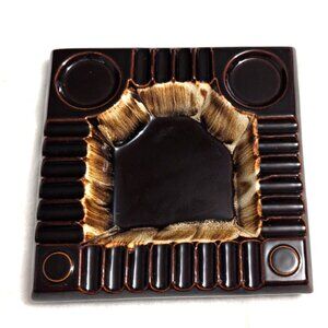 Vintage MCM Large Ceramic Ashtray Brown/Tan Drip Glaze 10.25" Square VGC