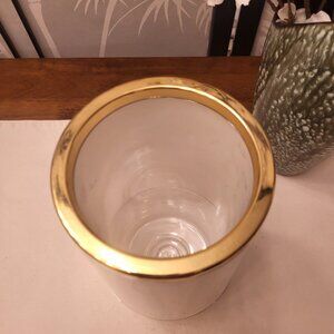 Up for sale is this unique Pierre Sparr Insulated Wine Cooler, a sophisticated piece that combines functionality with mid-century charm. Crafted with an elegant white acrylic case and classic gold band, this wine cooler is perfectly sized to fit a bottle of wine with ease, measuring approximately 9 inches in height and 4.5 inches in width. This freestanding unit is designed to keep a single wine bottle at the perfect temperature, making it an essential accessory for any wine enthusiast. The insulated plastic ensures that your wine stays chilled, while the sleek acrylic front provides a clear view of your bottle collection. Add a timeless element to your entertaining with this stylish and practical piece.