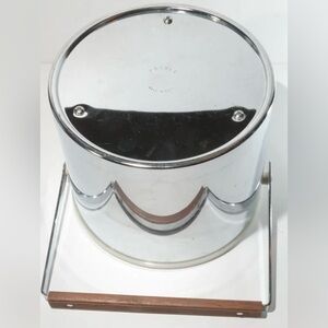 Vintage Ice bucket KROMEX wooden knob teak wood on handle Chrome Ice Container made in USA mid-century vintage insulated white plastic