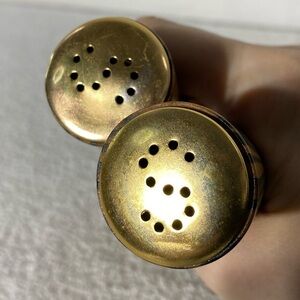 Good vintage condition. Minor signs of wear a of wear shown in pics. The tops each have a dent and each shaker has some wear on the middle, see close ups. They are both salt shakers, I do not have the matching pepper shakers. Measurements in pics. Please look at all pics and zoom min for a closer view. Not internet rated in selling separately.