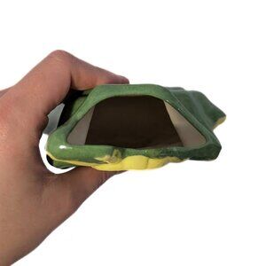 Vintage MCM Wall Hanging Planter Apron Theme Handmade Pottery Green Yellow Cute