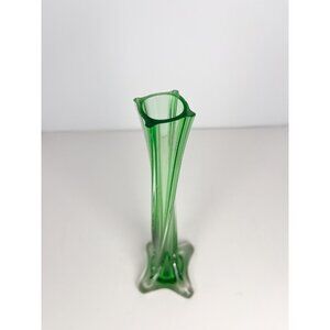 Vintage MCM emerald green art glass bud vase - twisted glass, footed
