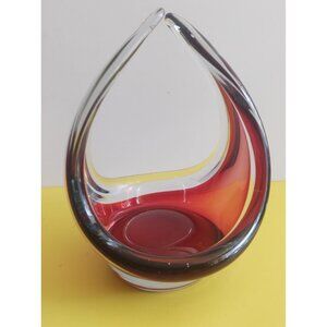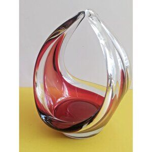 Vintage MCM glass vase/candy dish "Coquille" by Flygsfors, Sweden, Paul Kedelv
