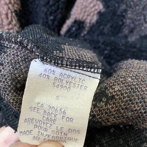 Vintage MIC Fleece Cardigan Womens Black Faux Fur Zip Holiday Reindeer Xmas
