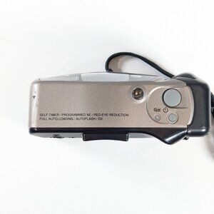 With a large viewfinder, self-timer, Programmed AE, Red-eye reduction, full auto-loading, Autoflash, DX. With marks of age and use as cam be seen in the images. Tested with batteries and the shutter and flash work, not tested with film.