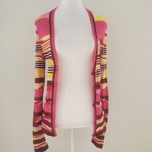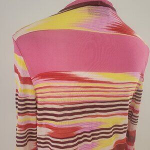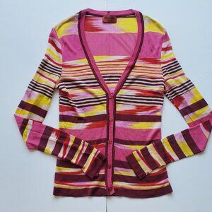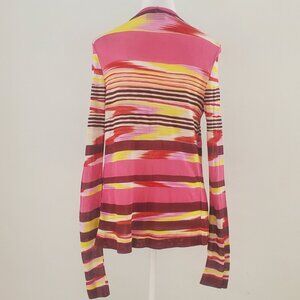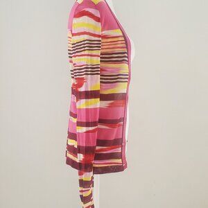 Vintage MISSONI Light Cardi Sweater Pink & Red Hues Stripes V Neck Button Down