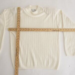 Vintage M.J. Carroll Cream Ribbed Cottagecore Mock Neck Sweater L