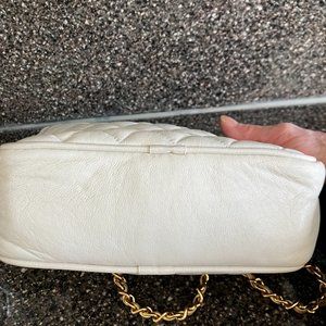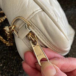 Vintage MNL cross body purse, cream colour, leather, like new, my dislike of a double zipper kept me from puying the other one, my bags like my shoes have been cleaned and treated yearly
