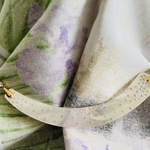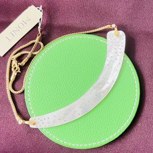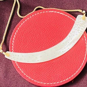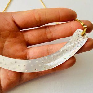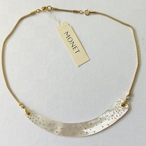 Vintage MONET Natural Rainbow Mother of Pearl Shell Choker Necklace with w/Spark Rhinestone