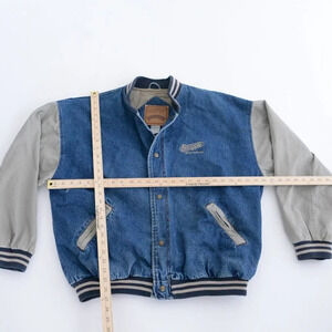 Vintage MV Sport Snapple Blue Denim & Canvas Button Up Bomber Jacket Size XL