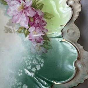 Exquisite! An original Moritz Zdekauer porcelain plate with lovely hand painted florals and detailed scalloped edge. The plate measures 10 3/8ths inches in diameter. From a smoke free home. No chips/cracks/breaks.