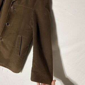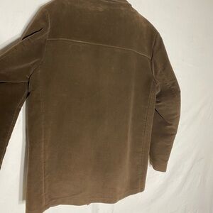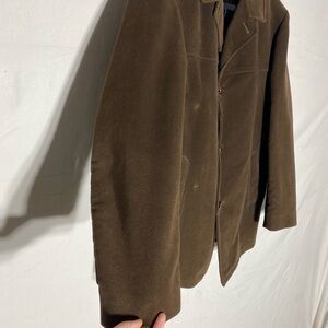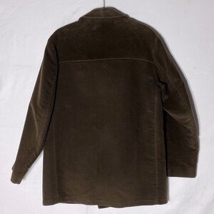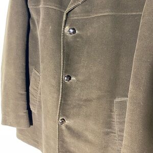 Good used condition. Minor signs of wear shown in pics. Outer feels velvety and soft. Inner lining is like a nice plush faux fur, zips in so can be completely removed for warmer seasons. No holes or stains. Size 40L on tag. No materials tag. Size L chosen based on measurements in pics.