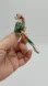 This vintage brooch pin features a colorful enamel design of a parrot in red, blue, gold, and green. The brooch also includes sparkling crystals that add a touch of elegance to the piece.