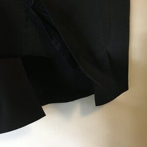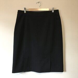 Very good preowned vintage condition, made in Canada, black skirt with black zigzag stitch, kick pleated skirt with side zipper by Cleo. A great office work essential and staple piece. Nice lining and cut.