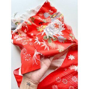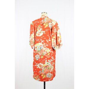 Vintage Made in Japan Red Oriental Japanese Floral Print Kimono, One Size
