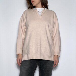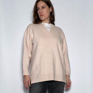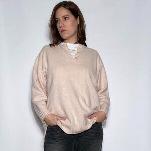 Vintage Made in SCOTLAND Baby Pastel Pink CASHMERE Henley Sweater! Large to XL