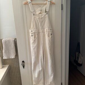 Madewell straight-leg corduroy overalls in cream / off-white colur