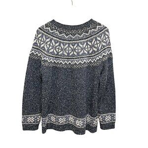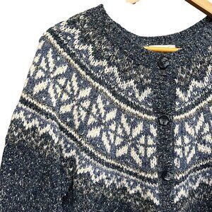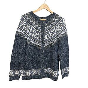 Vintage Maggie Blue White Norwegian Pattern Button Front Cardigan Size M