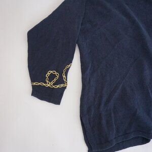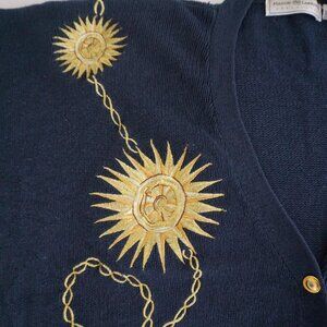 Vintage Maggie Lawrence Navy Gold Sun Chain Embroidered Knit Cardigan 22/24