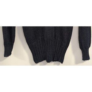 The sweater measures 18 inches from shoulder to shoulder and 27.5 inches from shoulder to hem, making it a perfect fit for most. Weighing 665 grams or approximately 1.5 pounds. Notic the double shoulder darts and ribbed cuffs. The classic black color adds a touch of elegance to any outfit. This sweater is a must-have for anyone who loves vintage clothing and unique statement pieces.