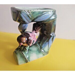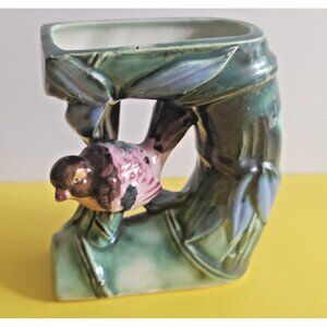 Vintage Majolica Pottery by Florart Japan Bird Vase 5" x 5" x 2" 1950's