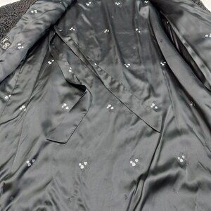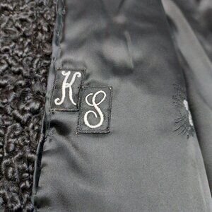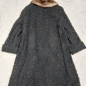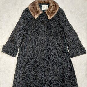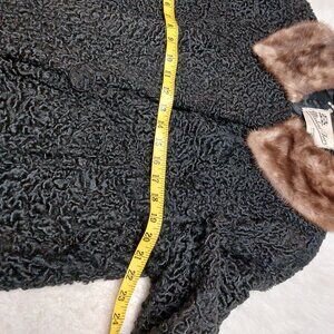 Vintage Malesi Furs Women's Black Luxury Curly Lamb Fur Coat Brown Mink Collar L