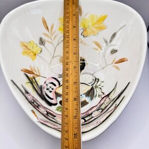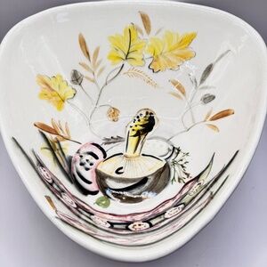 Vintage Mancioli Italian pottery footed serving bowl with 3 matching smaller bowls in an organic, triangular shape.