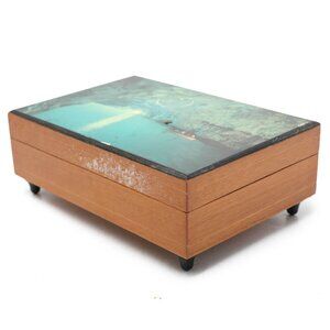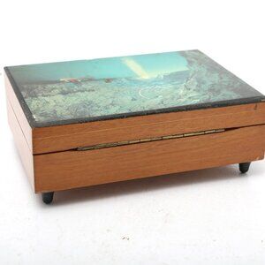 Vintage Mapsa Wooden Music Box Jewelry Trinket Container Capri Italy Grotto