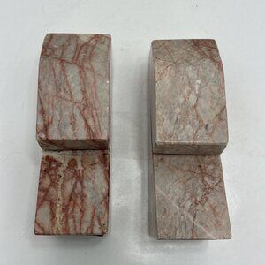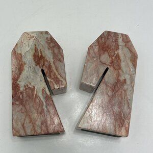 Vintage Marble Horse Head Book Ends Stone Heavy Red White Study Decor