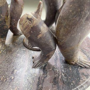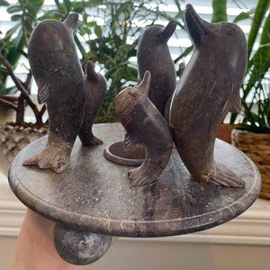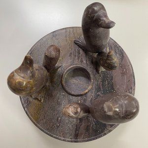 Vintage Marble Tea Light Holder/ Hand Carved Onyx Dolphins