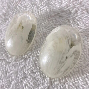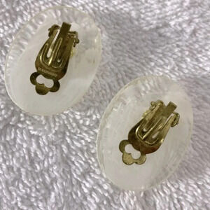 Vintage Marbled Clear Cream Plastic Oval Clip On Earrings