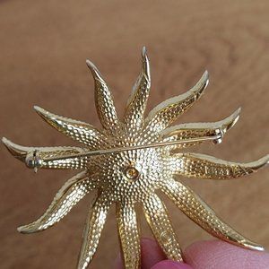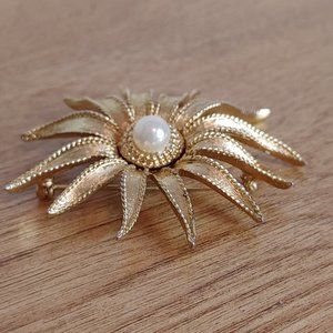 Vintage Marcel Boucher Brooch #7441 Gold Floral with Faux Pearl Center