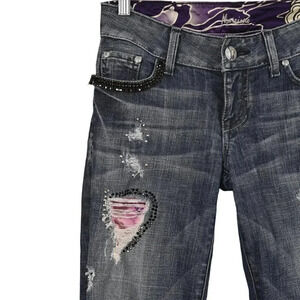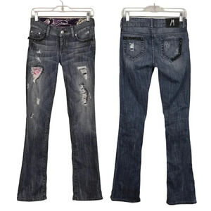 Vintage Marciano Y2K Jeans Embellished Distressed Low Rise Blue Boot Cut Size 25