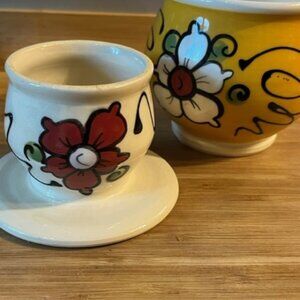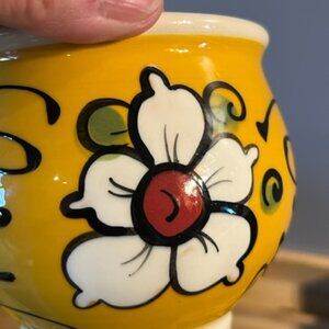 Vintage Marie France signed egg cooker Quebec Pottery art Egg cooker butter crock yellow hand painted flowers