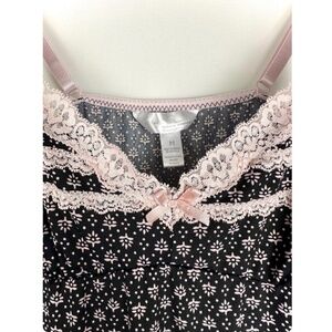 Vintage Marilyn Monroe Lingerie Printed Slip Dress in Black & Baby Pink • Ruffled Lace • Adjustable Straps • Stretch • Sweetheart Neck